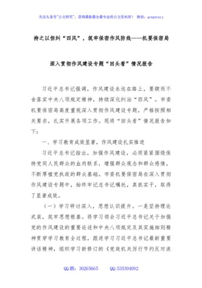 / 持之以恒纠“四风”,筑牢保密作风防线——机要保密局深入贯彻作风建设专题“回头看”情况报告