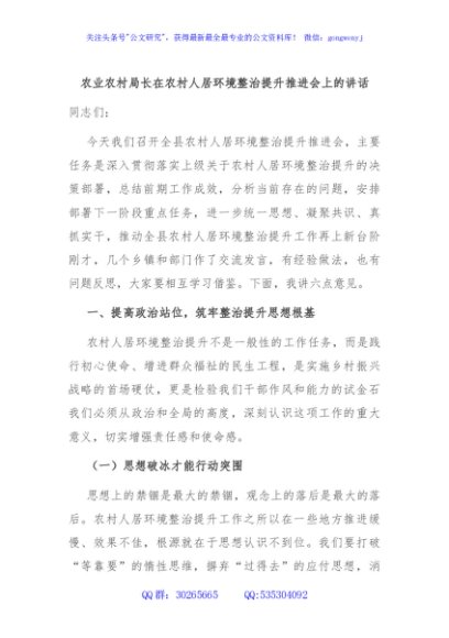 / 农业农村局长在农村人居环境整治提升推进会上的讲话