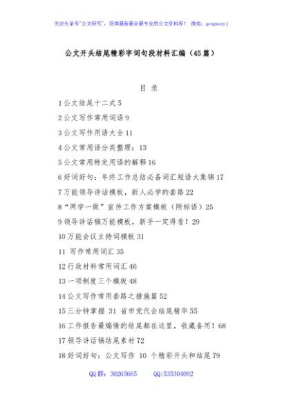 / (45篇)公文开头结尾精彩字词句段材料汇编