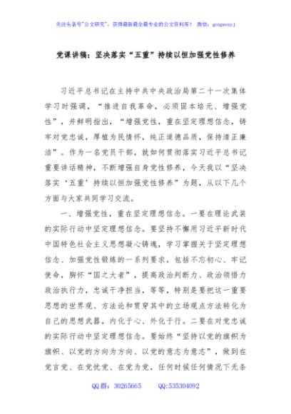 / 党课讲稿:坚决落实“五重”持续以恒加强党性修养