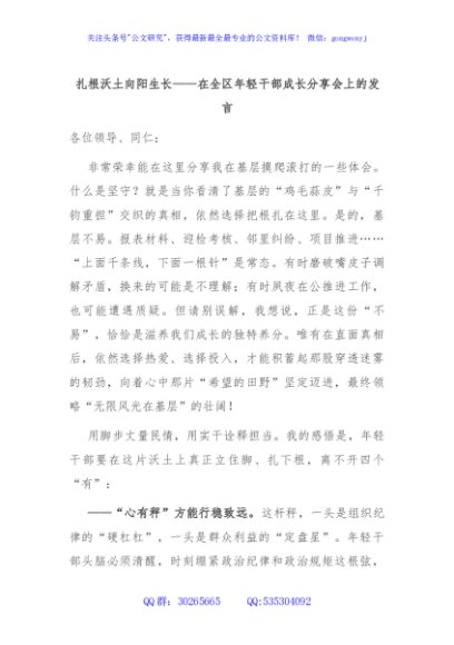 / 扎根沃土向阳生长——在全区年轻干部成长分享会上的发言