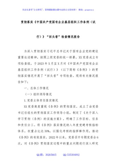 / 贯彻落实《中国共产党国有企业基层组织工作条例(试行)》“回头看”检查情况报告
