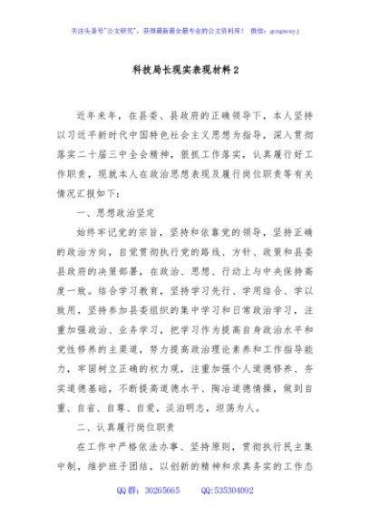 / 科技局长现实表现材料2
