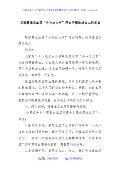 / 在破解基层治理“小马拉大车”突出问题推进会上的发言