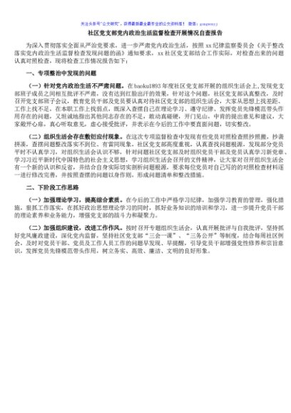 / 社区党支部党内政治生活监督检查开展情况自查报告