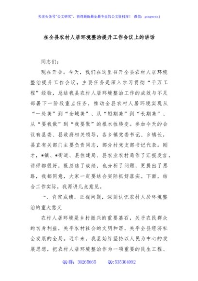 / 在全县农村人居环境整治提升工作会议上的讲话