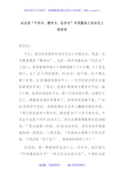 / 在全县“不作为、慢作为、乱作为”专项整治工作会议上的讲话