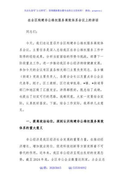 / 在全区构建非公维权服务高效体系会议上的讲话