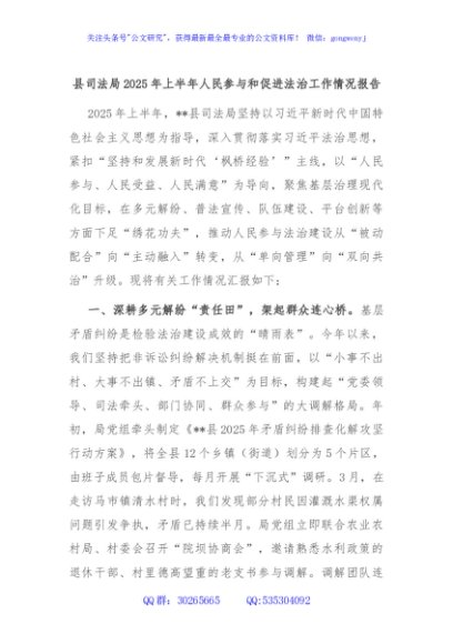 / 县司法局2025年上半年人民参与和促进法治工作情况报告