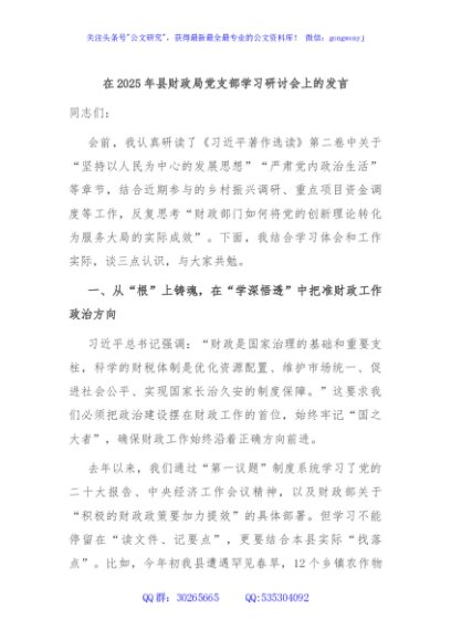 / 在2025年县财政局党支部学习研讨会上的发言