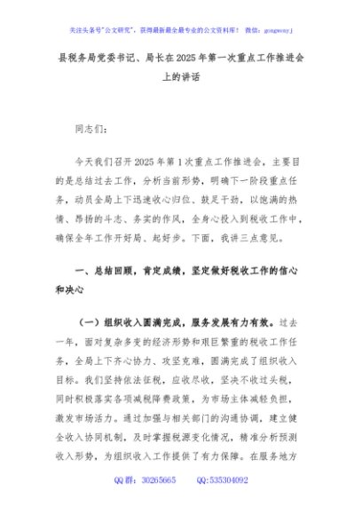 / 县税务局党委书记、局长在2025年第一次重点工作推进会上的讲话