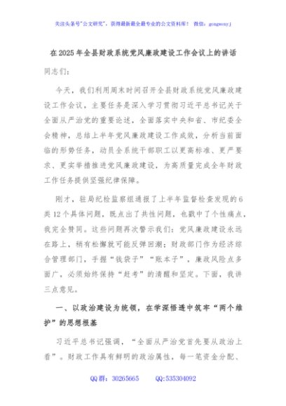 / 在2025年全县财政系统党风廉政建设工作会议上的讲话