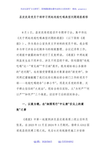/ 县发改局党员干部学习两起违规吃喝典型问题通报感悟