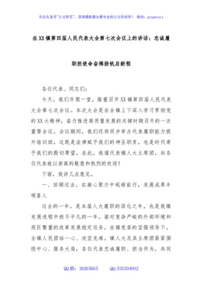 在XX镇第四届人民代表大会第七次会议上的讲话:忠诚履职担使命奋楫扬帆启新程
