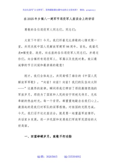 / 在2025年乡镇八一建军节退役军人座谈会上的讲话