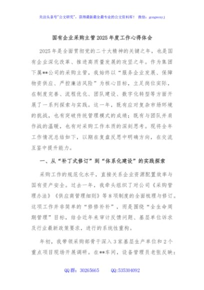 / 国有企业采购主管2025年度工作心得体会