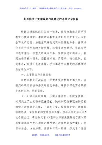 / 某医院关于贯彻落实作风建设的总结评估报告