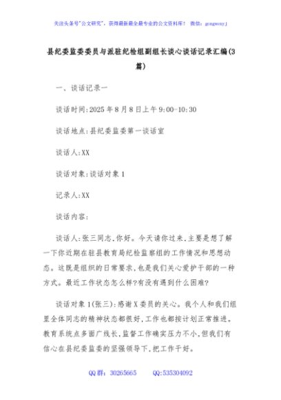 / (3篇)县纪委监委委员与派驻纪检组副组长谈心谈话记录汇编