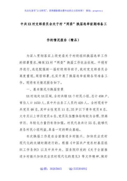 / 中共XX村支部委员会关于村“两委”换届选举前期准备工作的情况报告(精品)