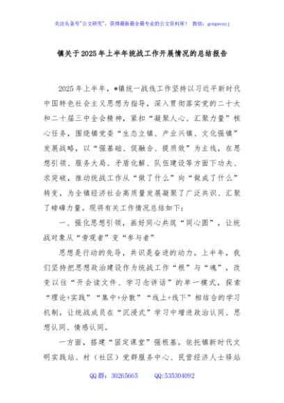 / 镇关于2025年上半年统战工作开展情况的总结报告