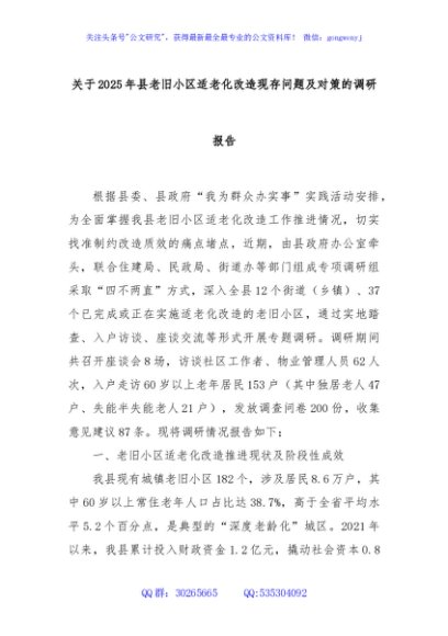 / 关于2025年县老旧小区适老化改造现存问题及对策的调研报告