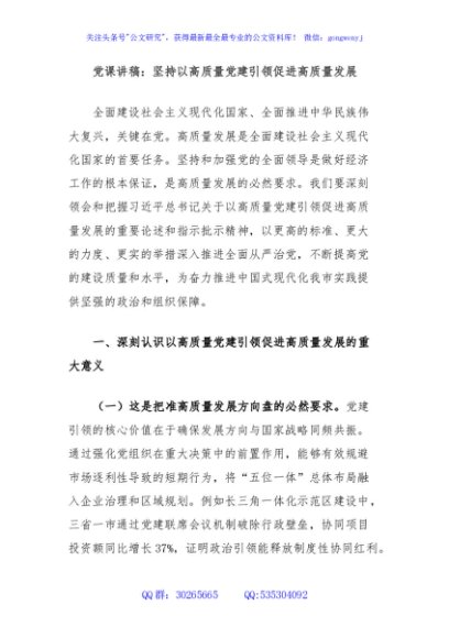 / 党课讲稿:坚持以高质量党建引领促进高质量发展