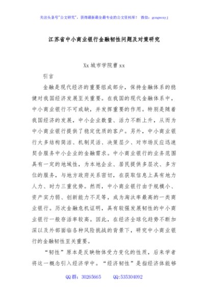 / 江苏省中小商业银行金融韧性问题及对策研究