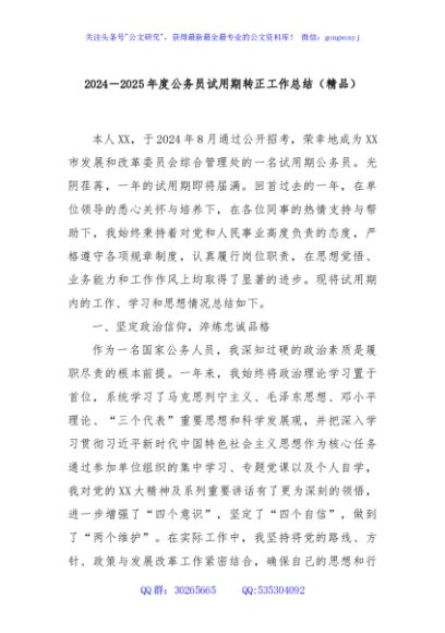 / 2024-2025年度公务员试用期转正工作总结(精品)
