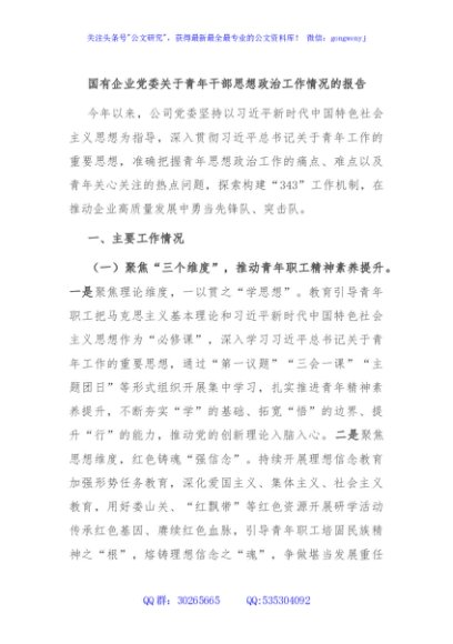 / 国有企业党委关于青年干部思想政治工作情况的报告