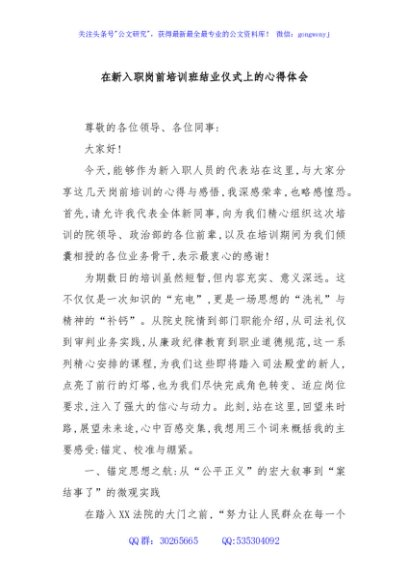 / 在新入职岗前培训班结业仪式上的心得体会