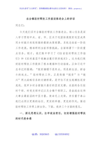/ 在全镇驻村帮扶工作座谈推进会上的讲话