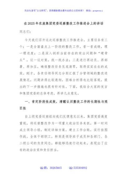 / 在2025年农旅集团党委巡察整改工作推进会上的讲话