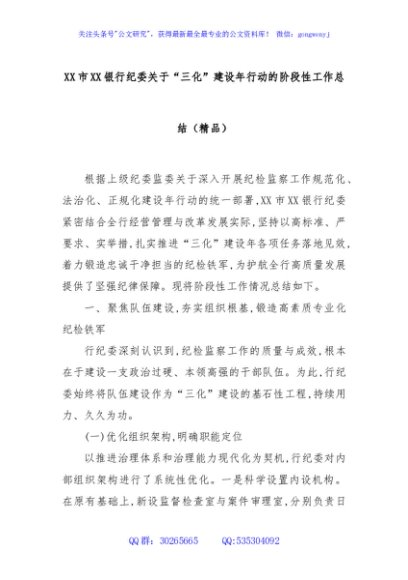 / XX市XX银行纪委关于“三化”建设年行动的阶段性工作总结(精品)