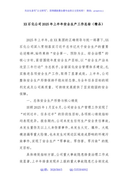 / XX石化公司2025年上半年安全生产工作总结(精品)