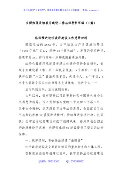 / (3篇)全面加强法治政府建设工作总结材料汇编