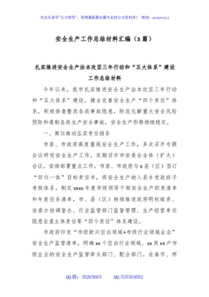 / (3篇)安全生产工作总结材料汇编