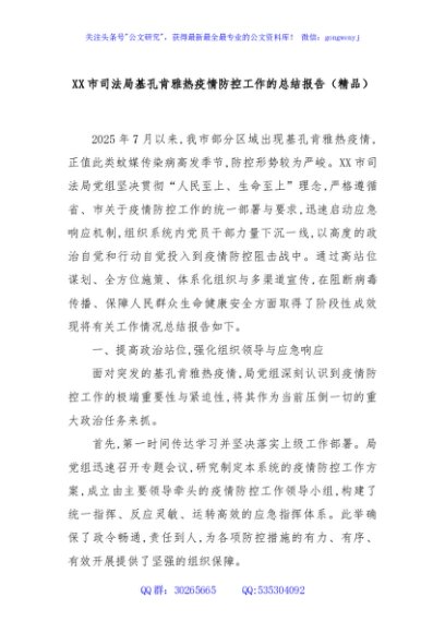 / XX市司法局基孔肯雅热疫情防控工作的总结报告(精品)