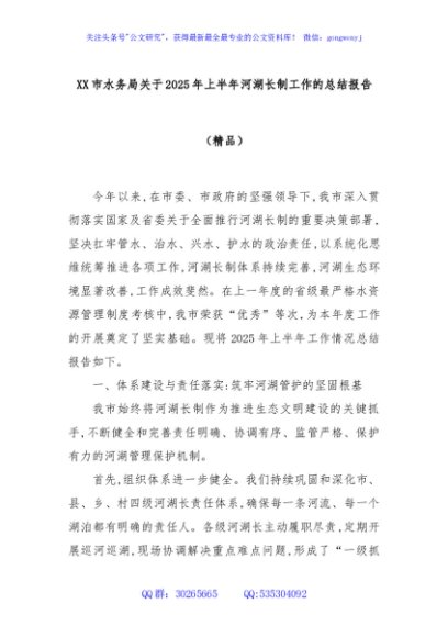 / XX市水务局关于2025年上半年河湖长制工作的总结报告(精品)