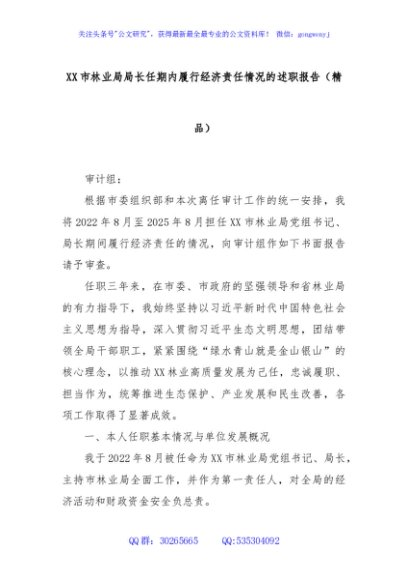 / XX市林业局局长任期内履行经济责任情况的述职报告(精品)