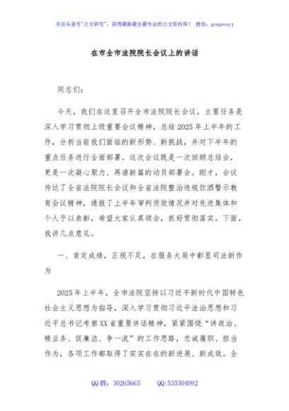 / 在市全市法院院长会议上的讲话