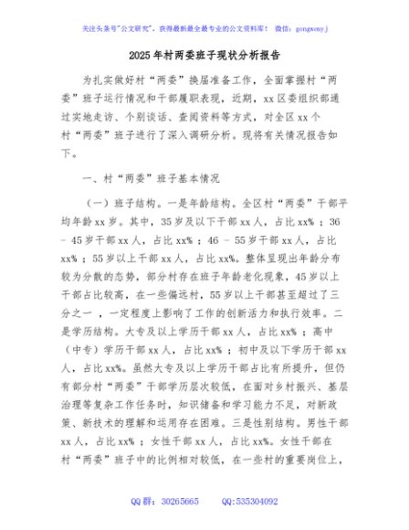 / 2025年村两委班子现状分析报告