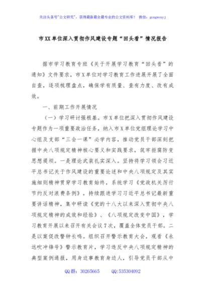 / 市XX单位深入贯彻作风建设专题“回头看”情况报告