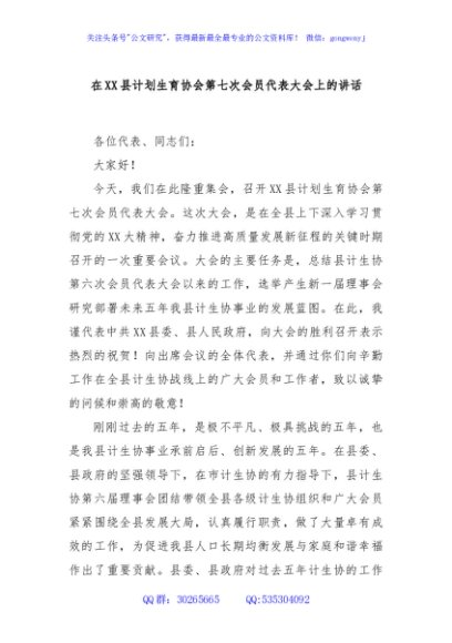 / 在XX县计划生育协会第七次会员代表大会上的讲话