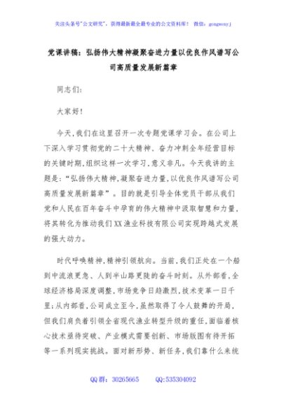 / 党课讲稿:弘扬伟大精神凝聚奋进力量以优良作风谱写公司高质量发展新篇章