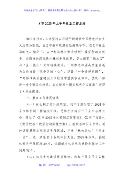 / X市2025年上半年林业工作总结