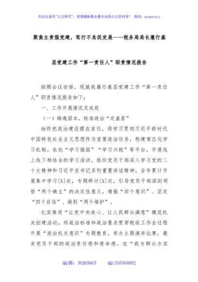 / 聚焦主责强党建,笃行不怠促发展——税务局局长履行基层党建工作“第一责任人”职责情况报告