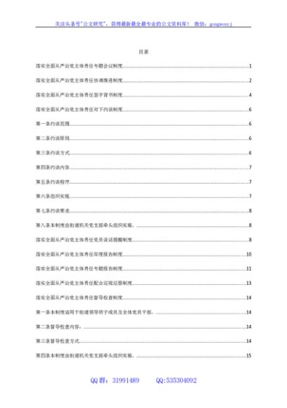 / 街道落实全面从严治党主体责任工作制度汇编