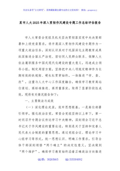 / 某市人大2025年深入贯彻作风建设专题工作总结评估报告