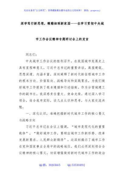 / 深学笃行新思想,精雕细琢新家园——在学习贯彻中央城市工作会议精神专题研讨会上的发言