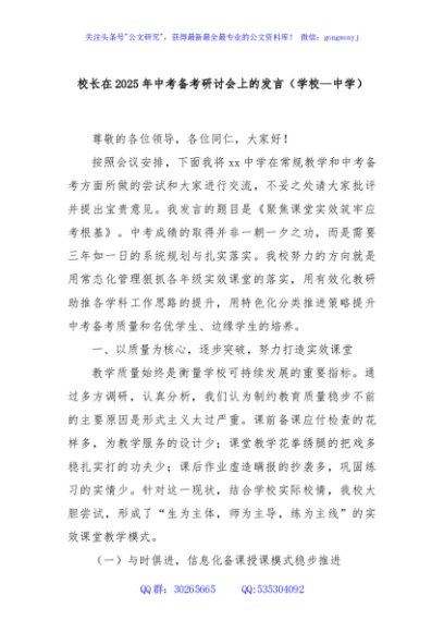 / 校长在2025年中考备考研讨会上的发言(学校—中学)